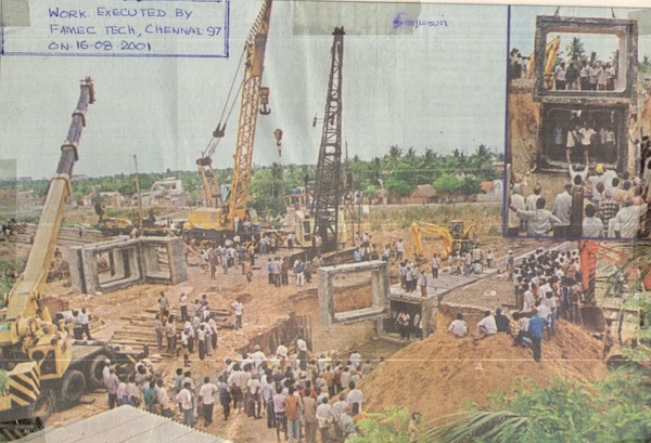 In 2001 We Introduced Cut and Connection method of trenchless construction - First of its kind in S. Railway. Completed in 10 hrs under line & power block, 2 hrs ahead of schedule. Employed 250 workers, many Cranes and other equipments to complete the Job in 10 hrs under line and power block - in 2 hours ahead of schedule.